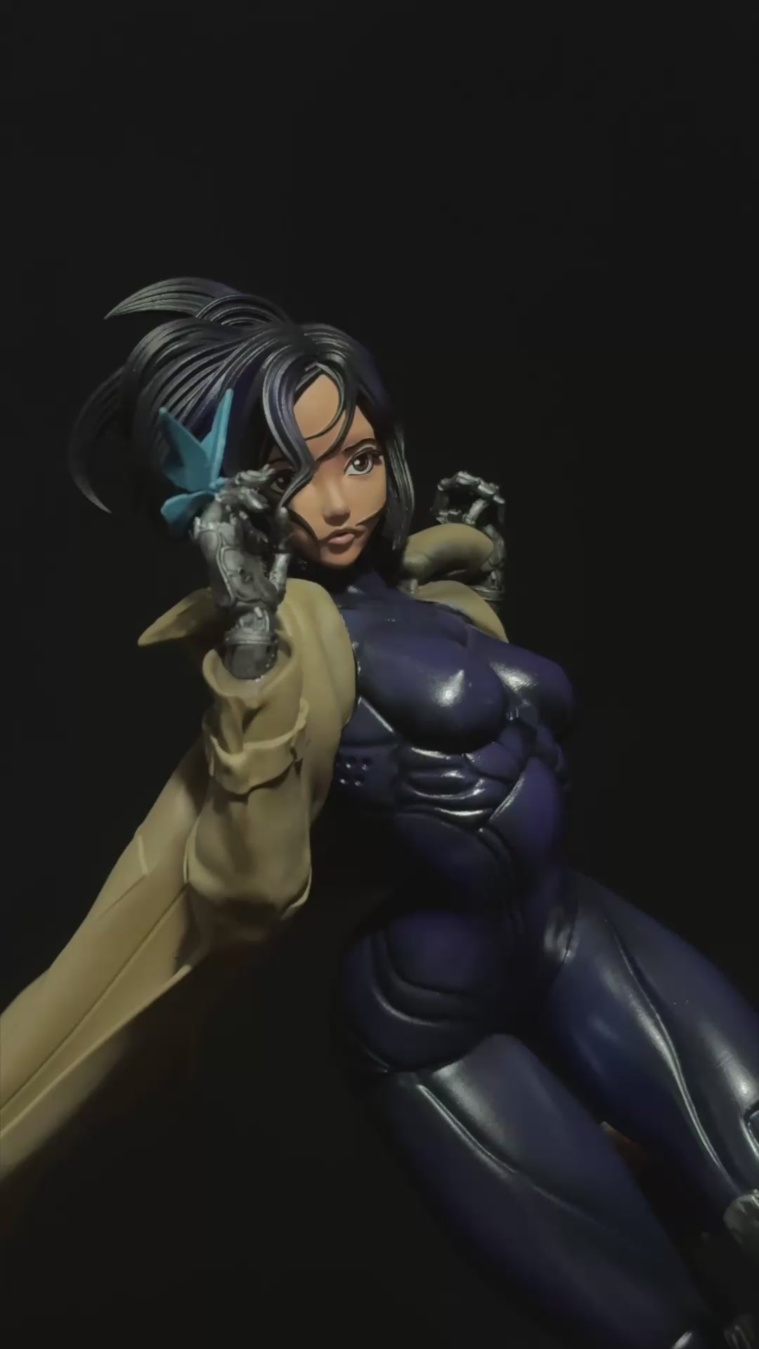- Posa Slanciata in Avanti: Alita è scolpita in una posa dinamica, in corsa, che eleva la statua e le conferisce uno slancio incredibile.